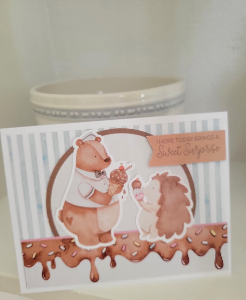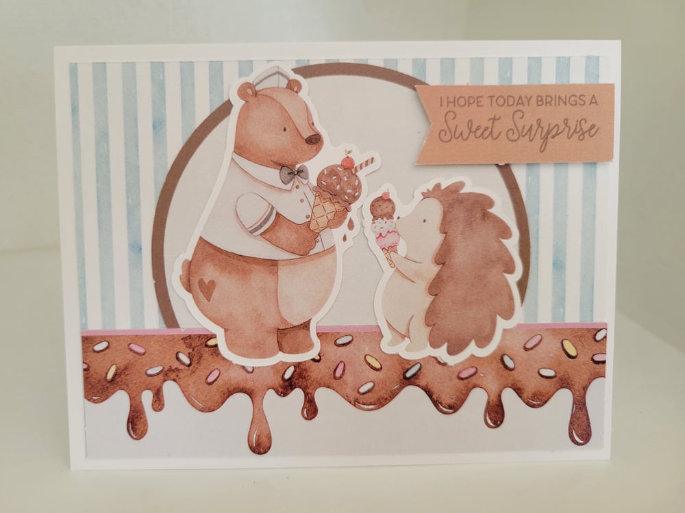 It reads "I Hope Today Brings A Sweet Surprise", and sits atop coordinating colors.
