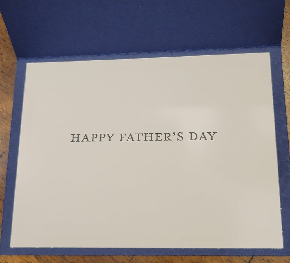 The inside of the card is navy blue with a white rectangle that reads "Happy Father's Day."