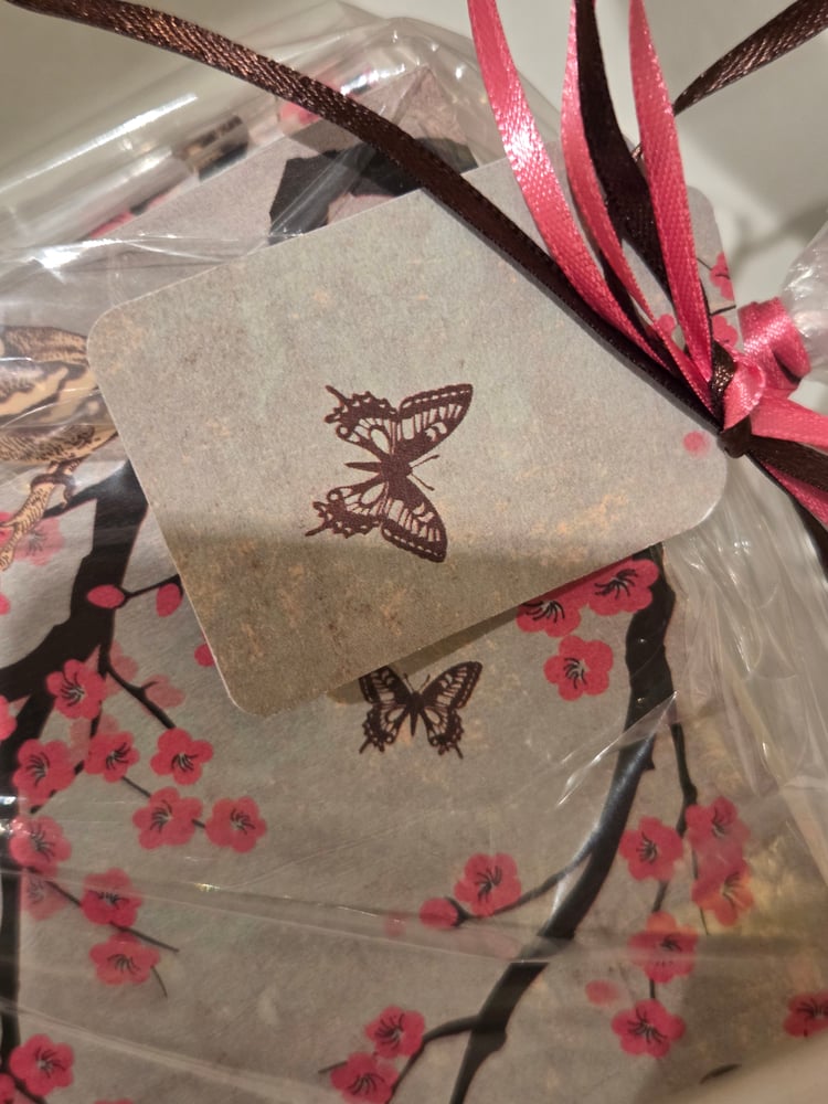 Notecards come beautifully wrapped in plastic and tied with coordinating ribbons and hand made coordinating blank tag.