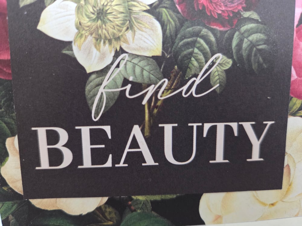 Design is as pictured- a rich floral and black design featuring different flowers in pinks, burgundy, white, and cream.
