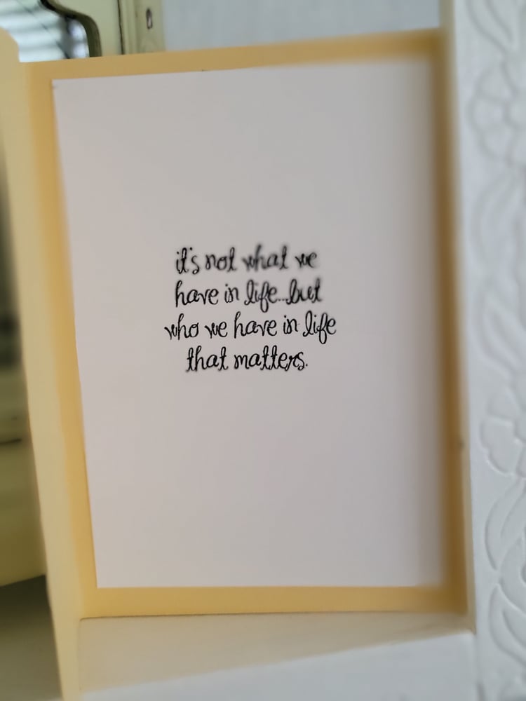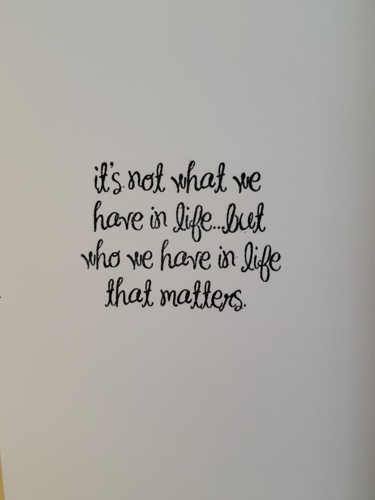The inside reads "it's not what we have in life...but who we have in life that matters."