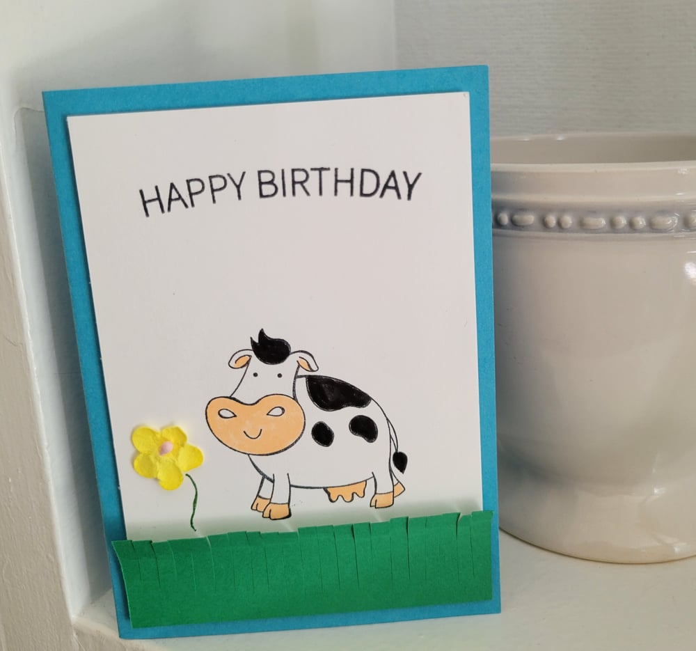 The front of the card reads "Happy Birthday" and includes a 3D flower accent.