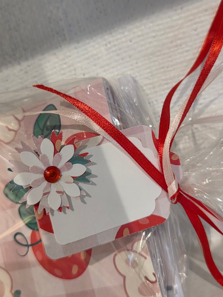 Notecards come beautifully wrapped in plastic and tied with coordinating ribbons and hand made coordinating blank tag.