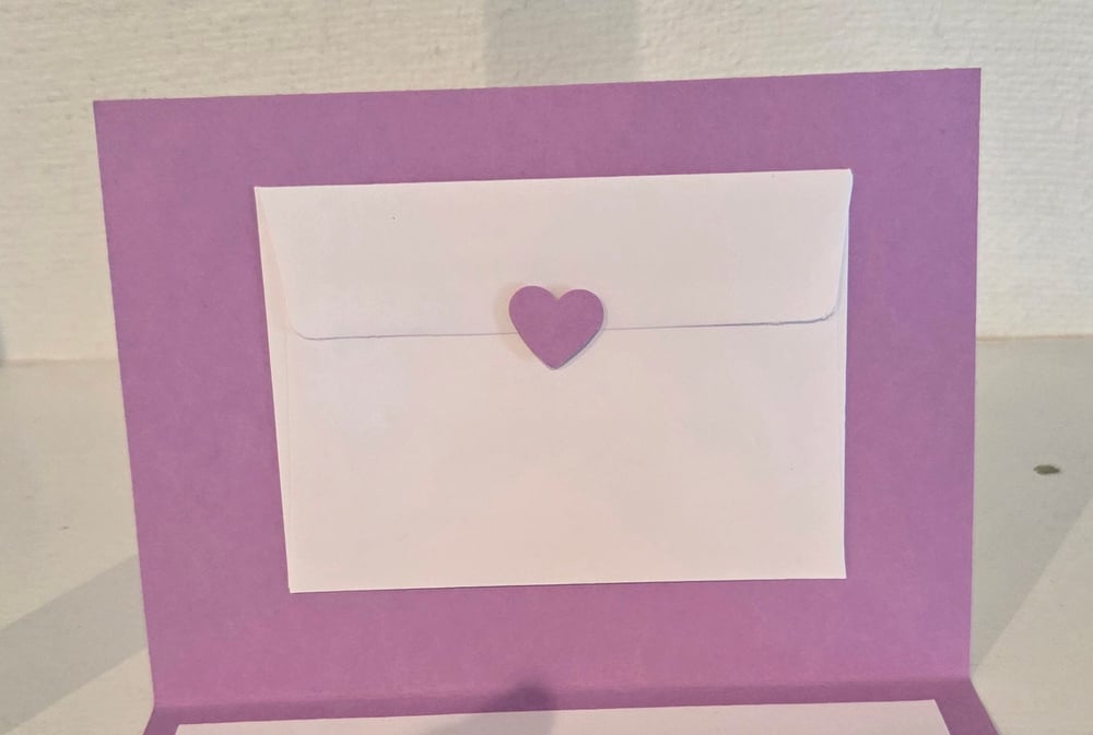 The backing of this card is pink and includes a white envelope.