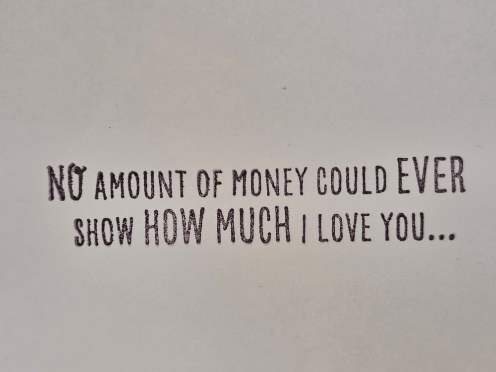 The front of the card reads "NO Amount of Money Could EVER Show HOW MUCH I Love You..."