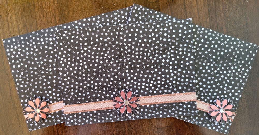 Notecards come beautifully wrapped in plastic and tied with coordinating ribbons and hand made coordinating blank tag.