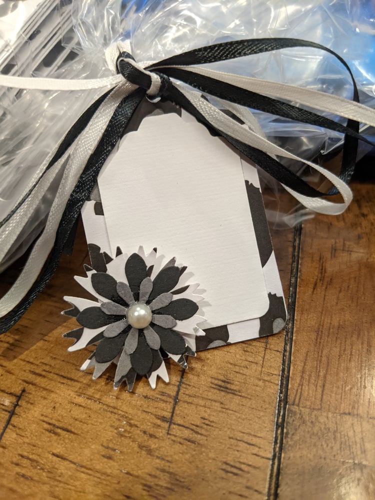 Notecards come beautifully wrapped in plastic and tied with coordinating ribbons and hand made coordinating blank tag.