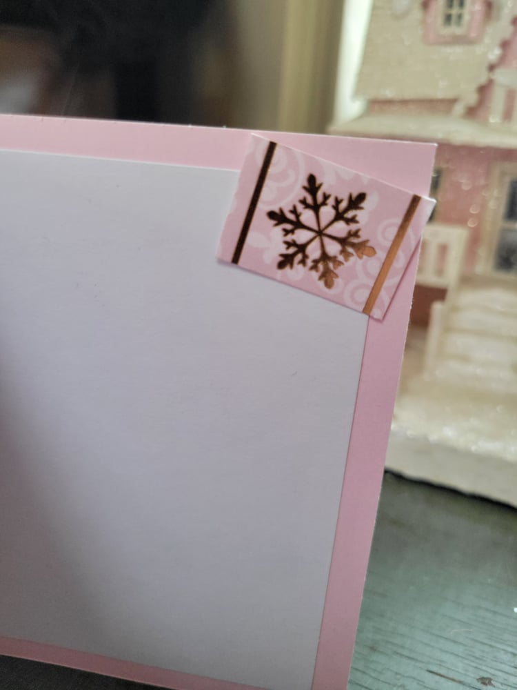 The inside is blank for you to add your own sentiment, with the exception of a gold foil snowflake on a pink square.